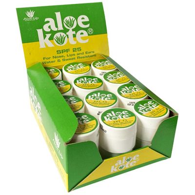 Aloe Kote SPF 25 is great for dry or chapped lips, ears, and noses. Aloe Kote is based with super moisturizer Aloe Oil to hydrate while it protects. With SPF 25, Aloe Kote is great for outdoor athletes with a higher risk of sun exposure. Aloe Kote has been one of Aloe Up's most popular products over the last 37 years.