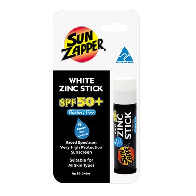 Sun Zapper Zinc Sticks are 100% Australian made and have been tested to meet the harsh conditions of our sun, snow, wind and waters. Zinc oxide is a natural sun blocker that stays on your skin for hours when in the water and is a prominent ingredient in the range. It won't burn your eyes and is great for people with sensitive skin conditions.